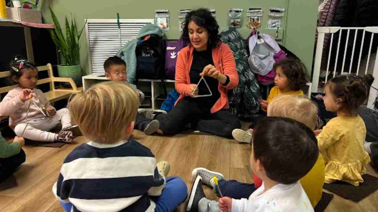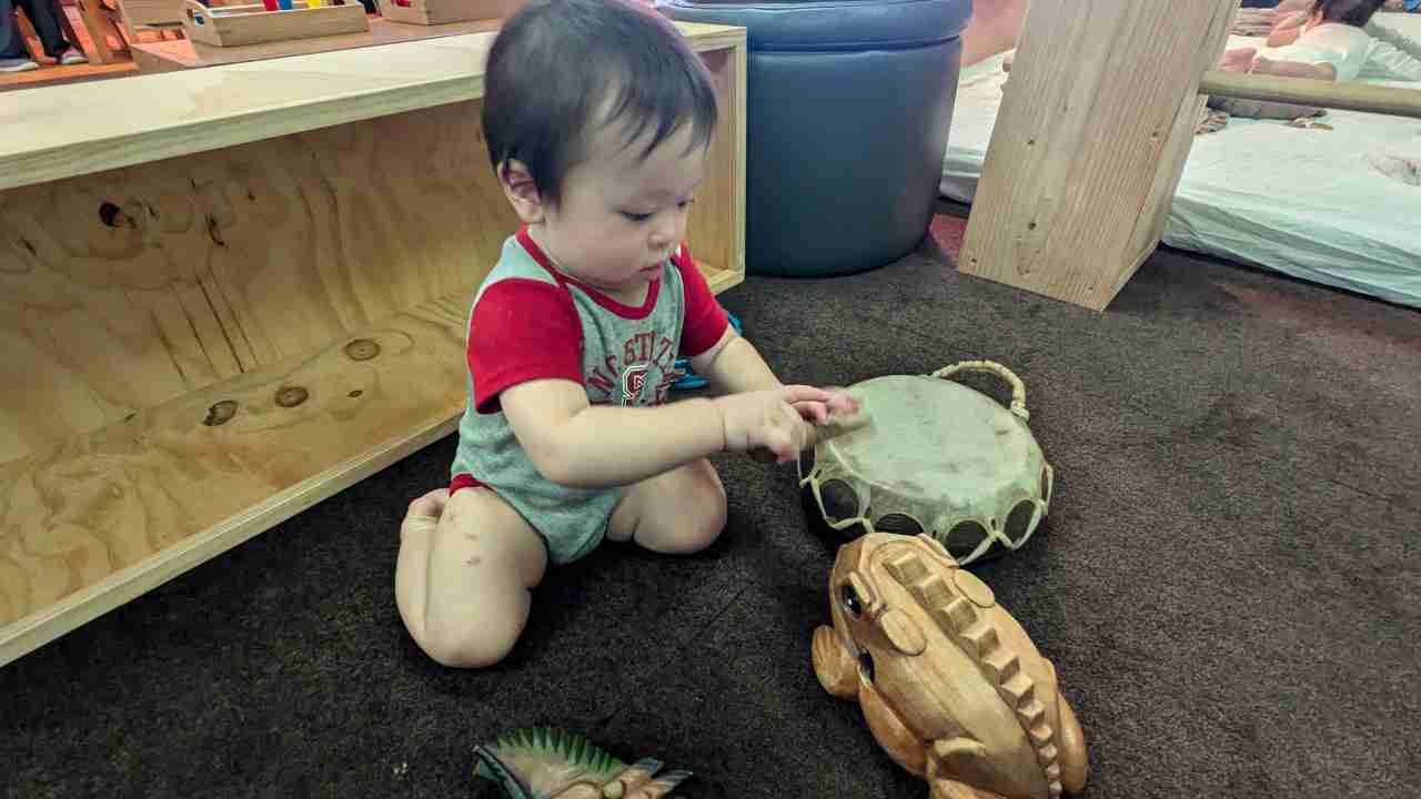 Music is a natural part of the child’s day. Children listen to simple instruments such as drums and shakers, and they may encounter music through a Yoto or music boxes, which allow for independent exploration. Caregivers sing softly during routines, creating predictable musical patterns that help babies feel secure and connected. Finger plays support sensory development, early coordination, and a sense of connection.
