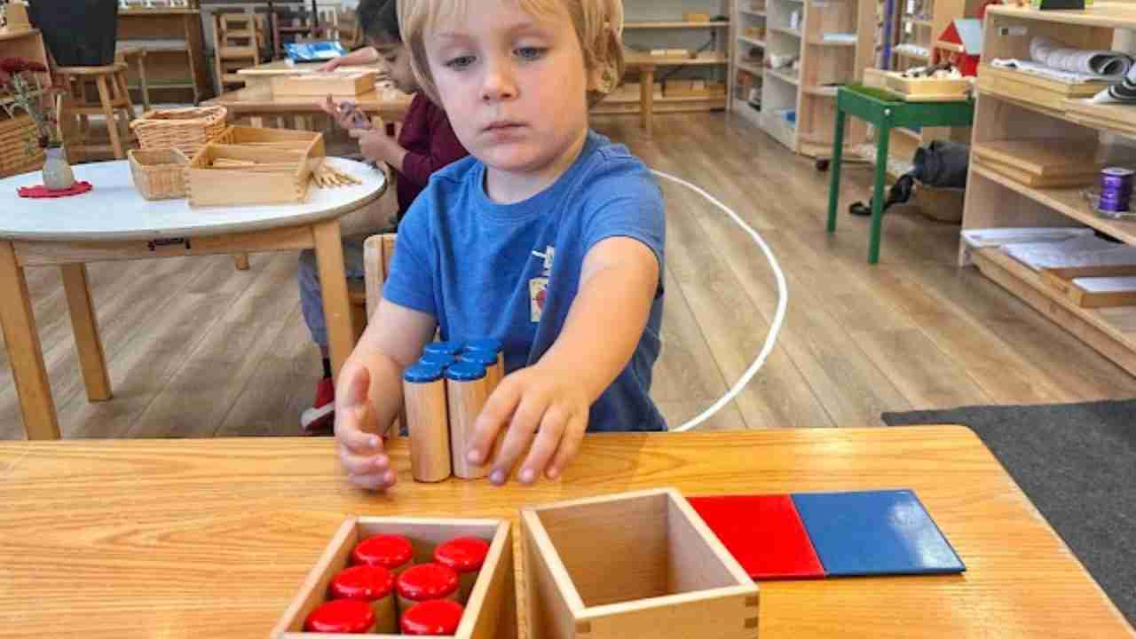 Infants experience the arts through sight, sound, and gentle movement. They explore high-contrast black-and-white images in books and through the Montessori Munari mobile. They handle beautiful materials made of wood, metal, fabric, and natural fibers, which introduce symmetry, texture, and order through hands-on exploration.